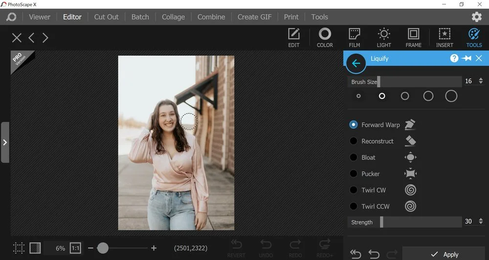 Профессиональный фоторедактор с продвинутыми инструментами, среди которых есть и пластическая деформация для изменения силуэта. Программа подойдет для продвинутой работы с фотографиями. Если нужно отредактировать пару кадров для соцсетей, лучше выбрать более дешевый и простой вариант.