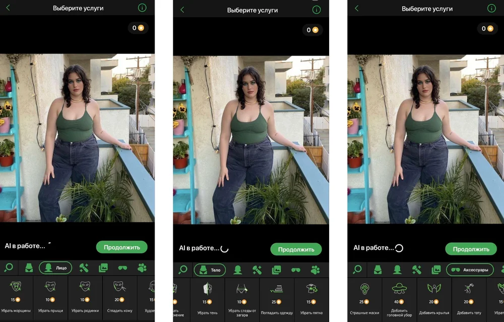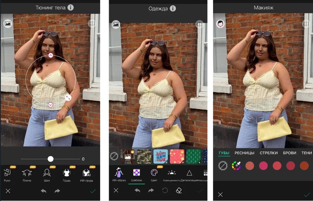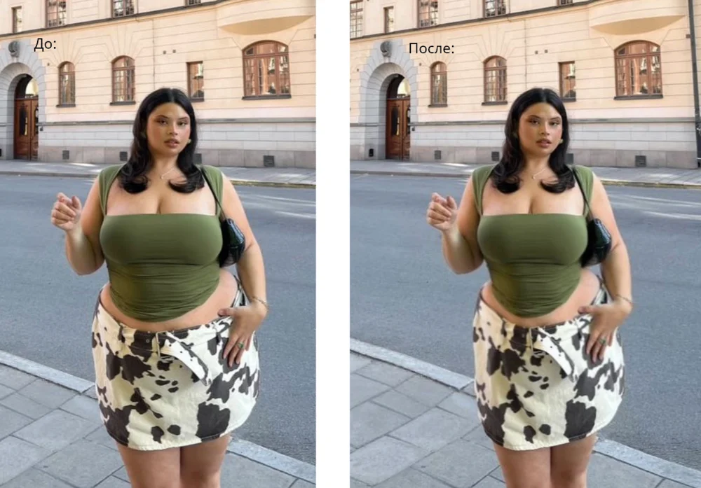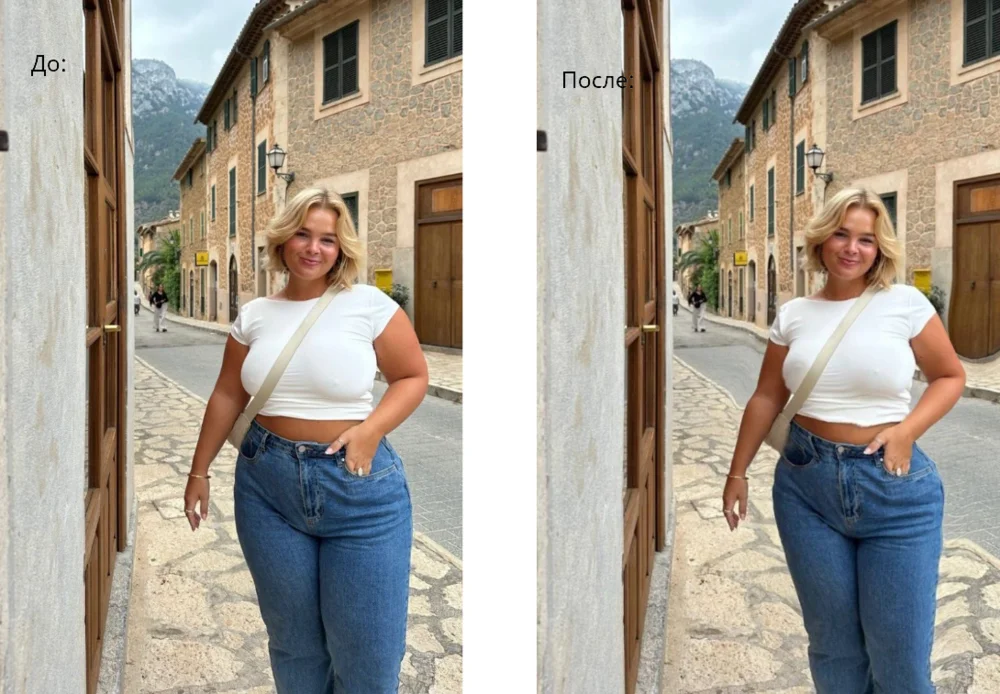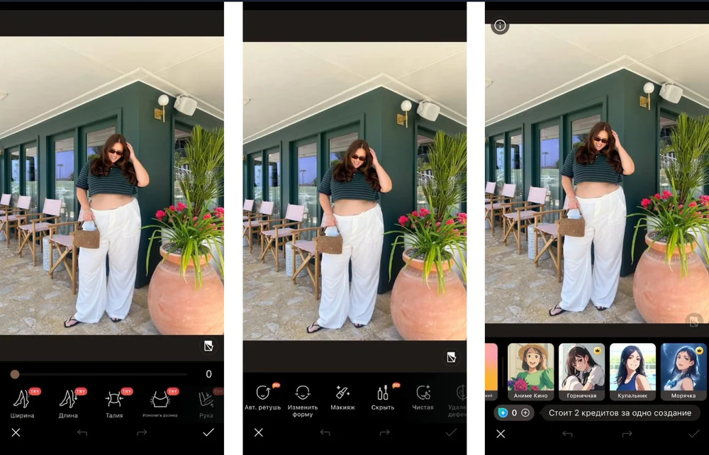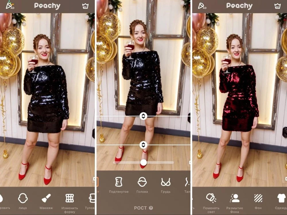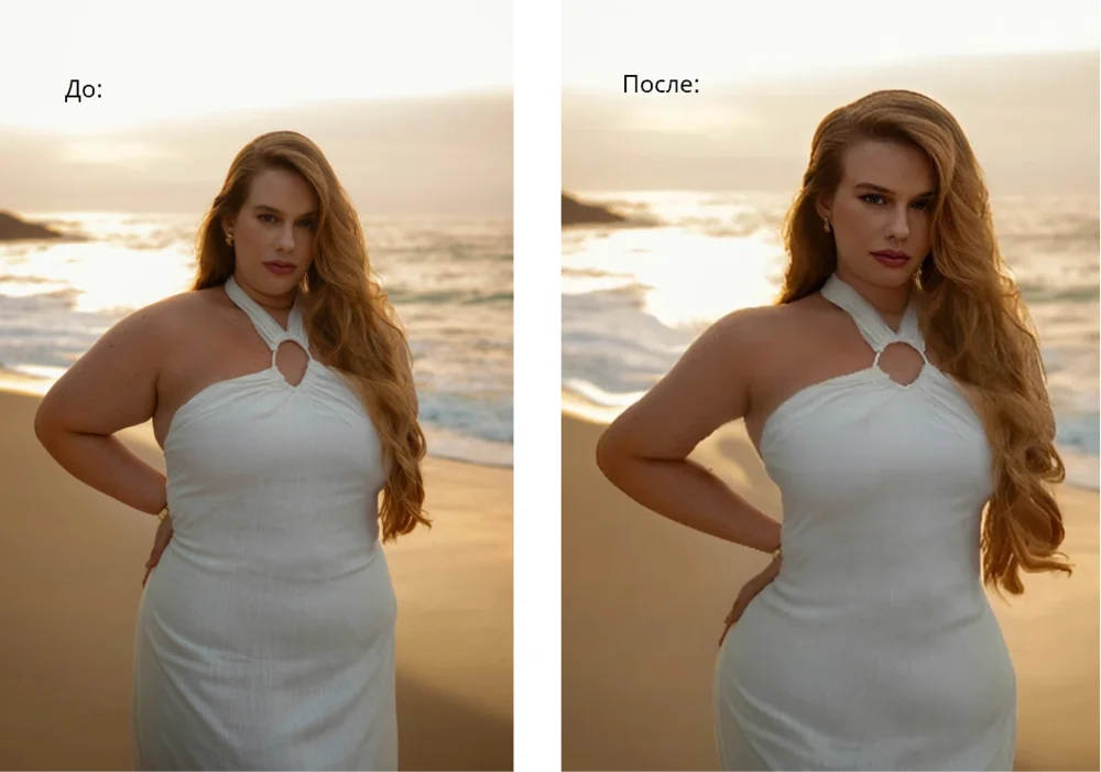 - возможности ретуши — регулирование роста, уменьшение талии, удаление складок;