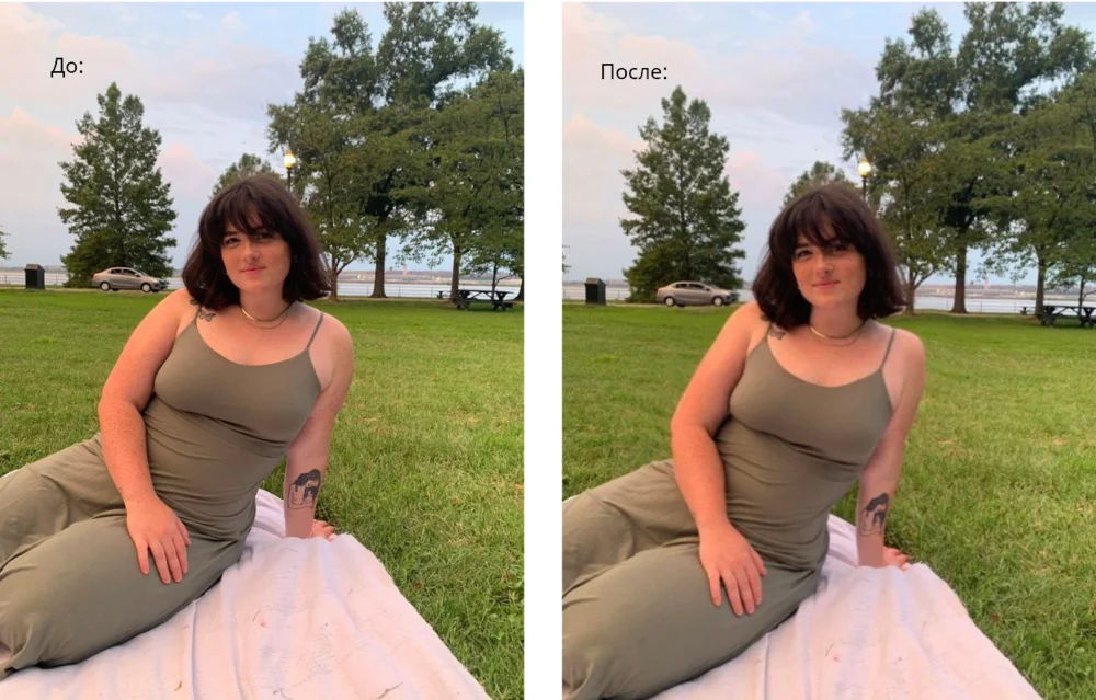 - есть ИИ-ретушь кожи, которая автоматически разглаживает морщины и устраняет дефекты.