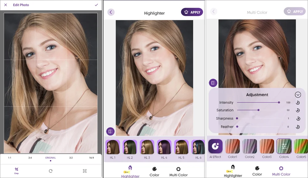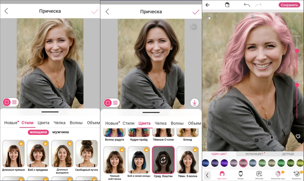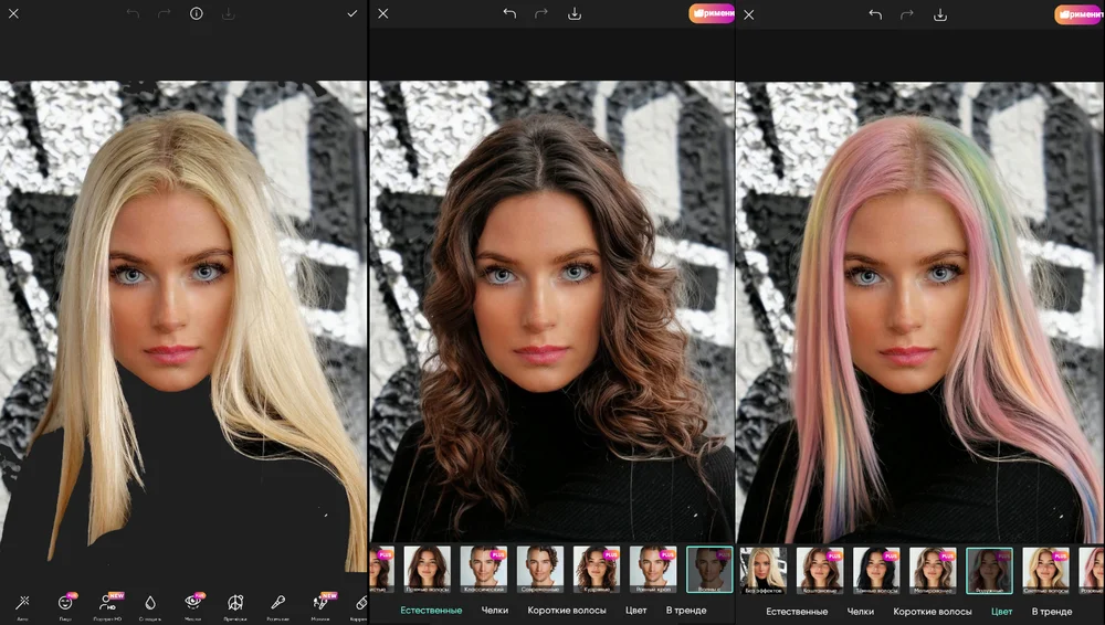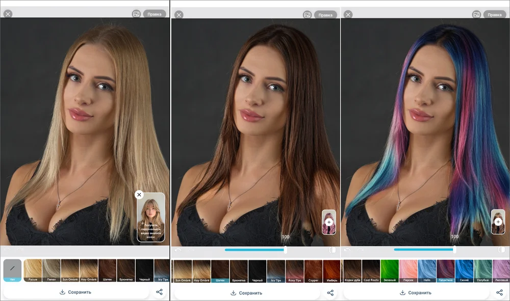 Десктопные редакторы — это оптимальное решение для бьюти-экспериментов. В них можно самостоятельно выбирать оттенки, не ограничиваясь предустановленными шаблонами. Дополнительный плюс — благодаря корректировке вручную возможна работа с портретами в профиль или вполоборота, чтобы оценить, как будет выглядеть прическа с разных ракурсов.
