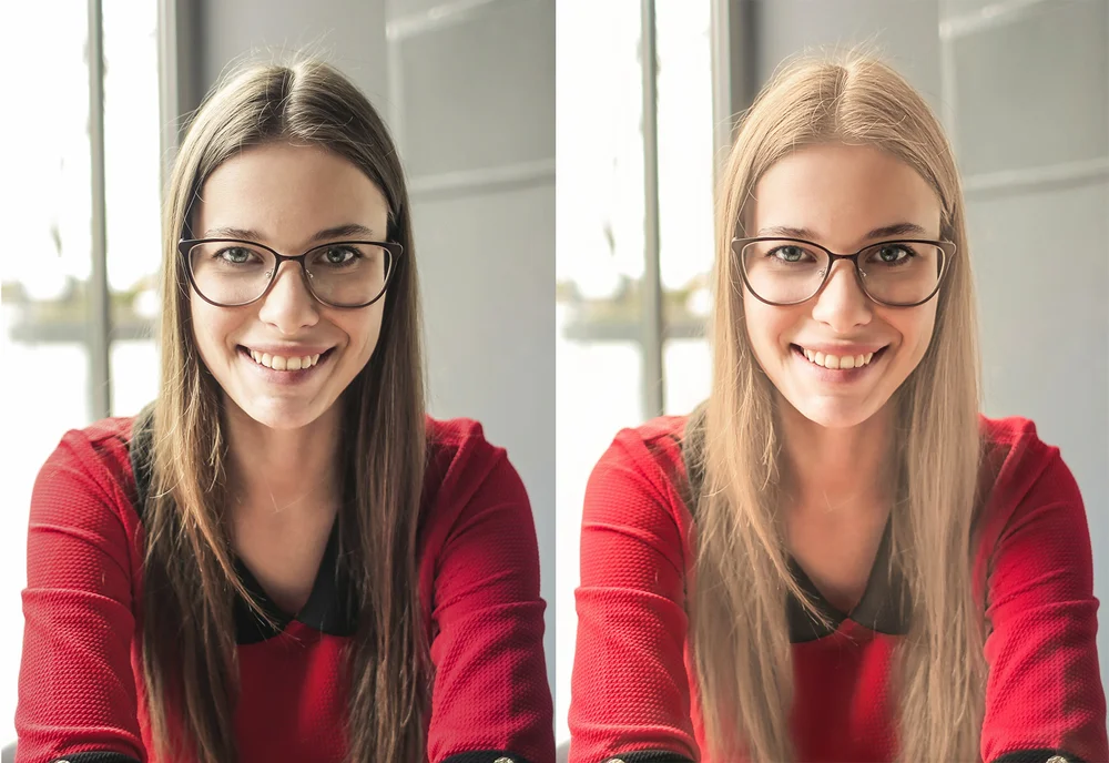 - если перекрасить блондинку в брюнетку или наоборот, изменения выглядят ненатурально;