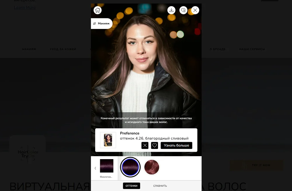 Сервис от популярной фирмы-производителя красок. Будет полезен, если нужно оценить перспективу окрашивания перед домашней процедурой или походом в салон.