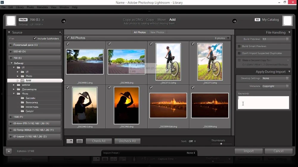 - В появившемся окне укажите путь к папке с изображениями. Вы можете выбрать все элементы или выделить отдельные фотоснимки для импорта.