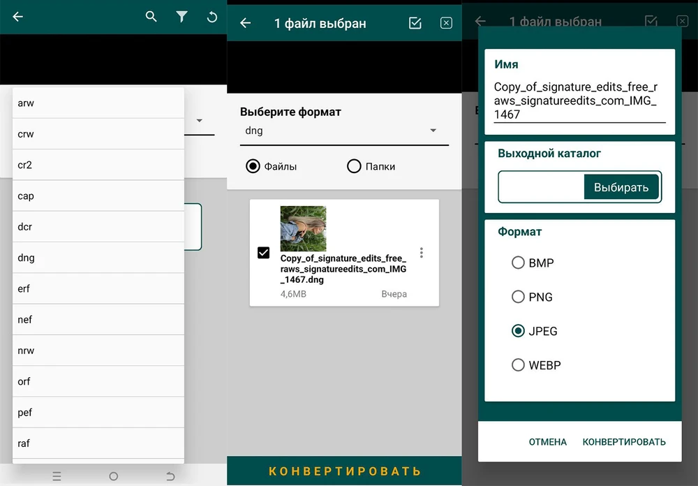 Конвертеры RAW в JPEG/PNG