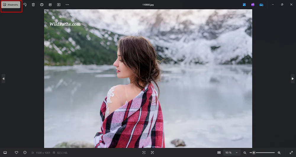 - Откройте изображение в «Галерее».