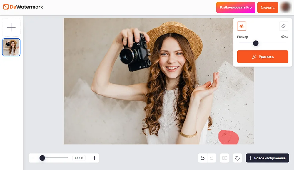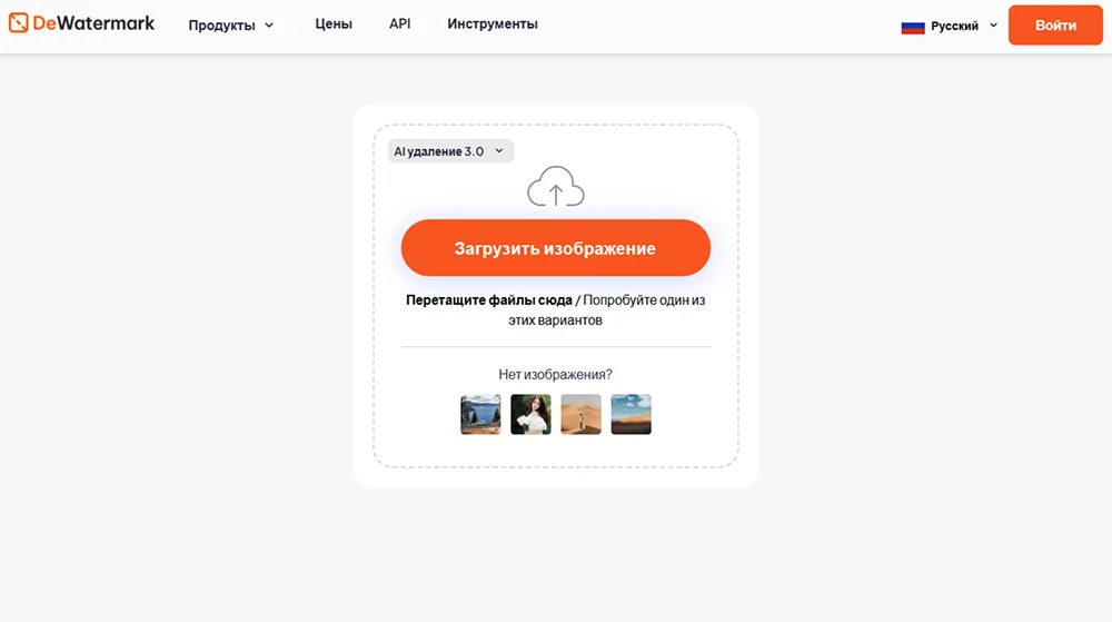 - Dewatermark — онлайновое решение на основе ИИ. Хорошо справляется с задачей при обработке одиночных файлов или небольшой партии изображений.