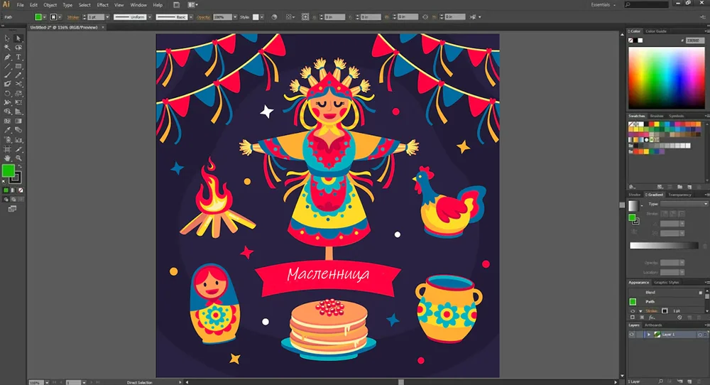 Самая популярная программа для работы с вектором. Вы можете создавать паттерны и элементы фирменного стиля для брендбука, рисовать от руки с помощью графического планшета. Есть возможность конструировать геометрические формы, использовать градиенты, прозрачность и множество других эффектов. Софт поддерживает цветовые модели CMYK, позволяет работать с обрезными метками и другими важными параметрами для типографии.