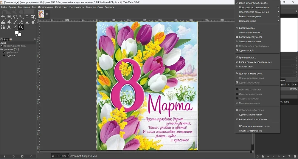 - размещение на холсте дополнительных изображений с контролем их прозрачности;