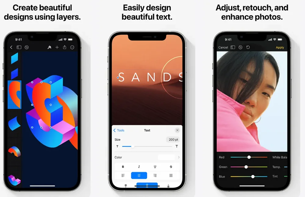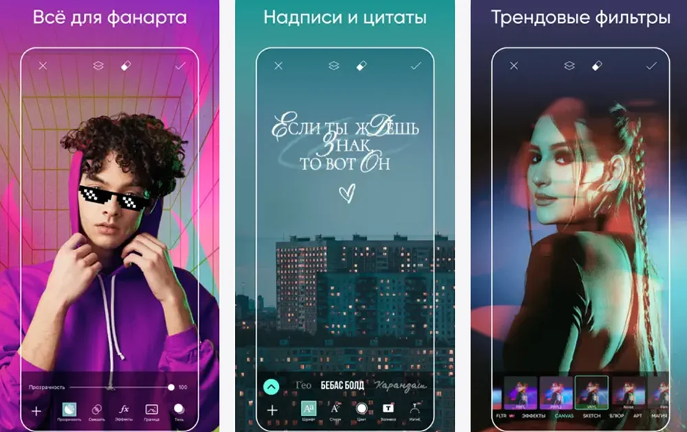 Мобильный софт для обработки фотографий, конструирования графики и коллажирования. Включает обширную библиотеку макетов, адаптированных под различные темы: музыкальные концерты, спортивные события, образовательные мероприятия, бизнес-презентации и многое другое. Позволяет работать со слоями, что дает возможность создавать сложные композиции, накладывая текст, изображения, графические элементы и эффекты друг на друга.