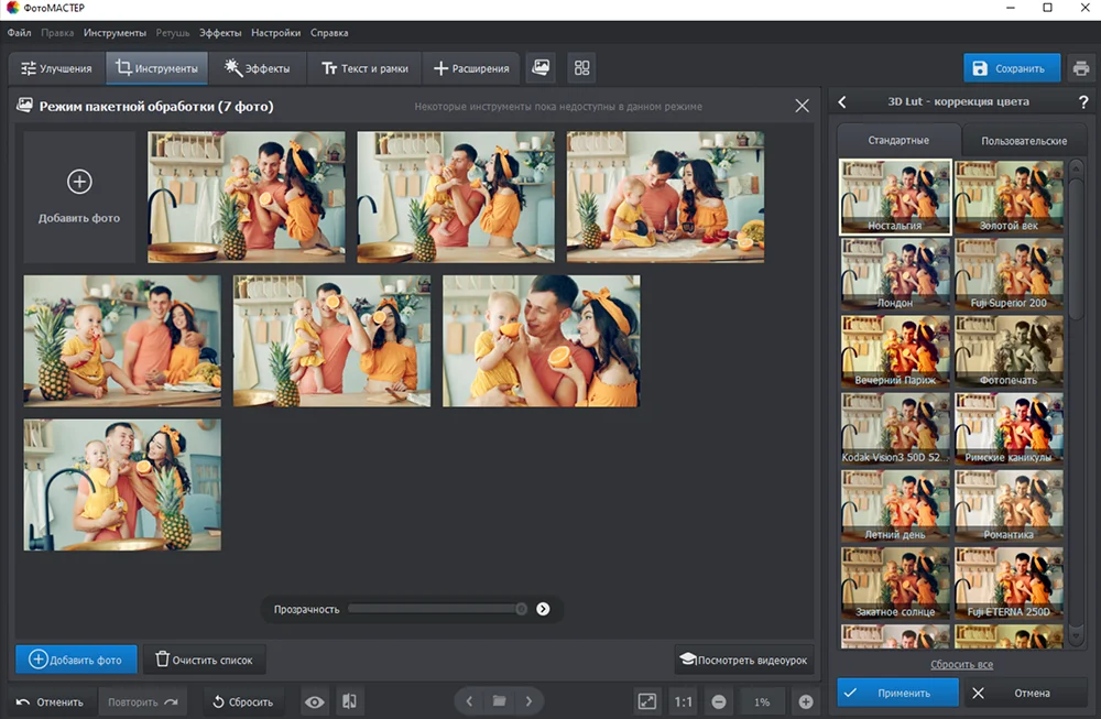 Есть редакторы, которые поддерживают одновременное преобразование более 100 снимков, а некоторые и 1000 (например, ФотоМАСТЕР).