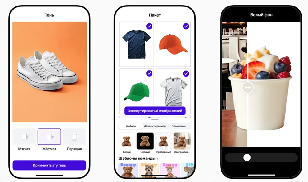 - Photoroom (Фоторум) — мобильный софт для iOS и Android, ориентированный на подготовку снимков к продажам: удаляет фон и подбирает новый посредством ИИ.