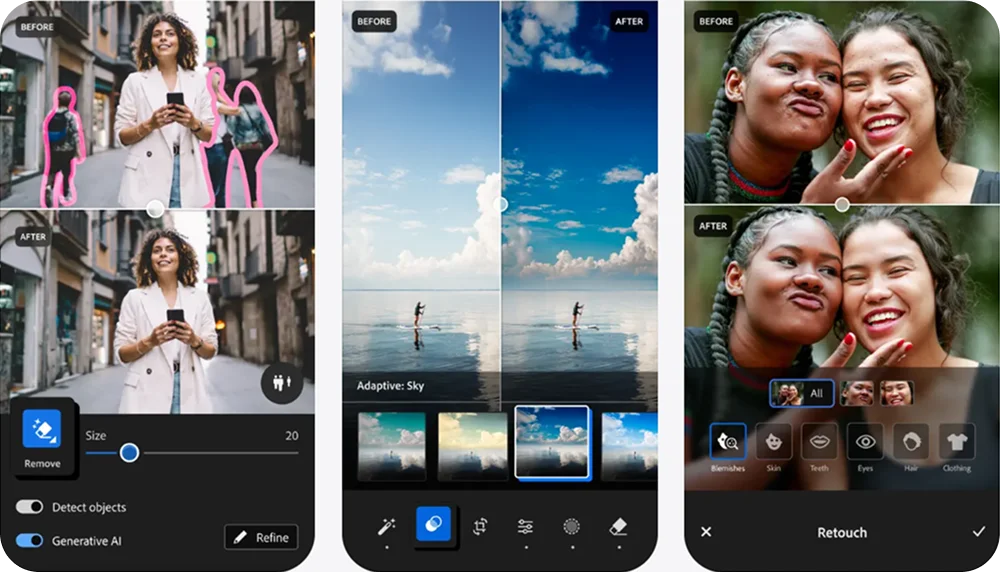 Мобильная версия знаменитого фоторедактора от Adobe. Здесь акцент сделан на настройку цвета, экспозиции, работу с деталями и создание собственных пресетов. Сначала вы редактируете один снимком, затем сохраняете настройки и применяете к остальным фото из пакета.