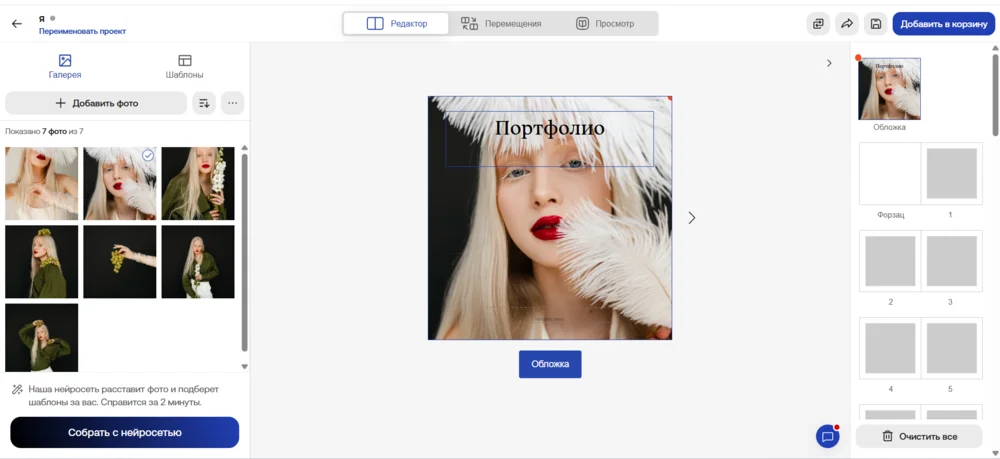 | Mixbook | веб | нужна | AI-генерация текста, сотни готовых дизайнов обложек, набор графики: надписи, стикеры, клипарт, рисунки, фигуры |