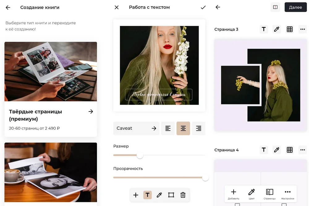 - в мобильном приложении пропорции страниц не всегда совпадают с реальными, что может быть заметно после на готовом изделии;