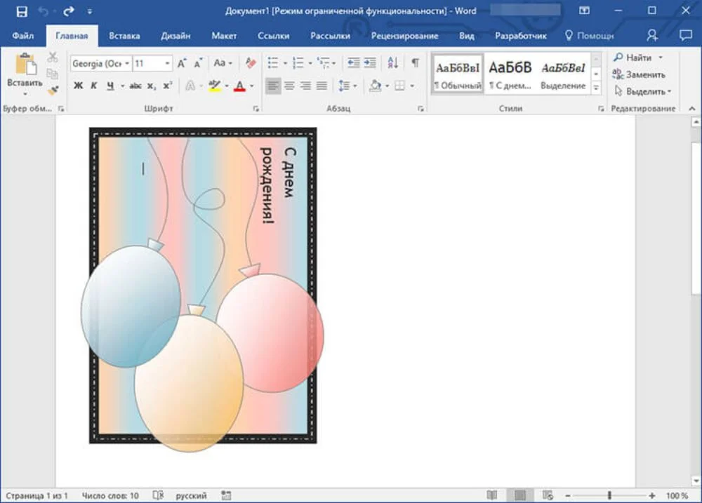 Для разработки поздравительного материала установите Word. Затем выполните эти шаги: