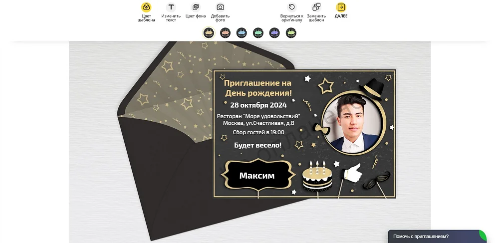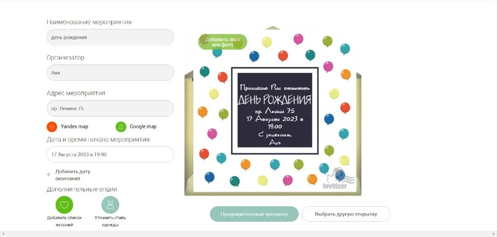 Кому подойдет: организаторам вечеринок, которым нужен софт для создания и отправки приглашений.