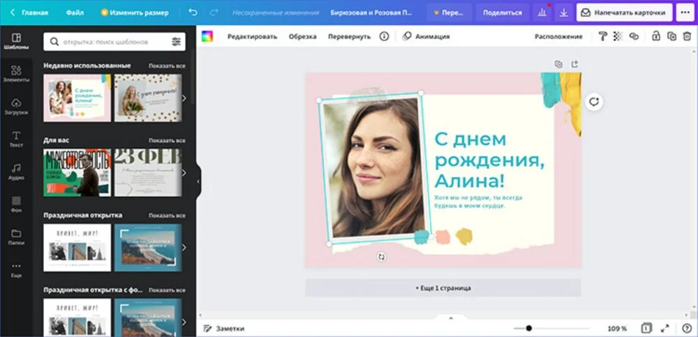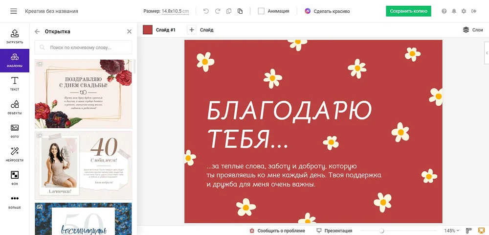 Кому подойдет: новичкам и среднеуровневым пользователям, которые хотят создать открытку.