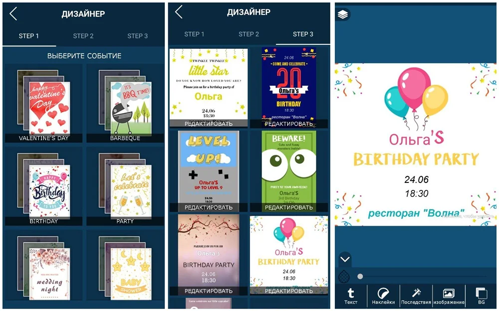 Теперь вы знаете, какие приложения для создания пригласительных и поздравлений лучше использовать на персональном компьютере или телефоне: