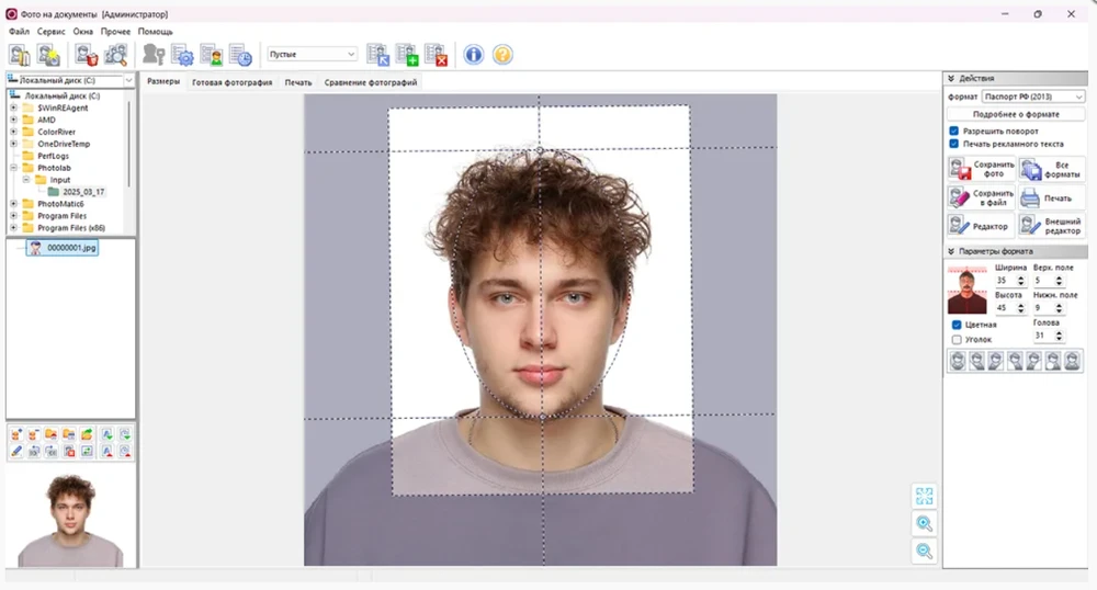 Также ФотоМАСТЕР можно использовать в качестве редактора фото на документы — он позволяет точно кадрировать, убирать лишнее окружение и добавлять чистый светлый фон.