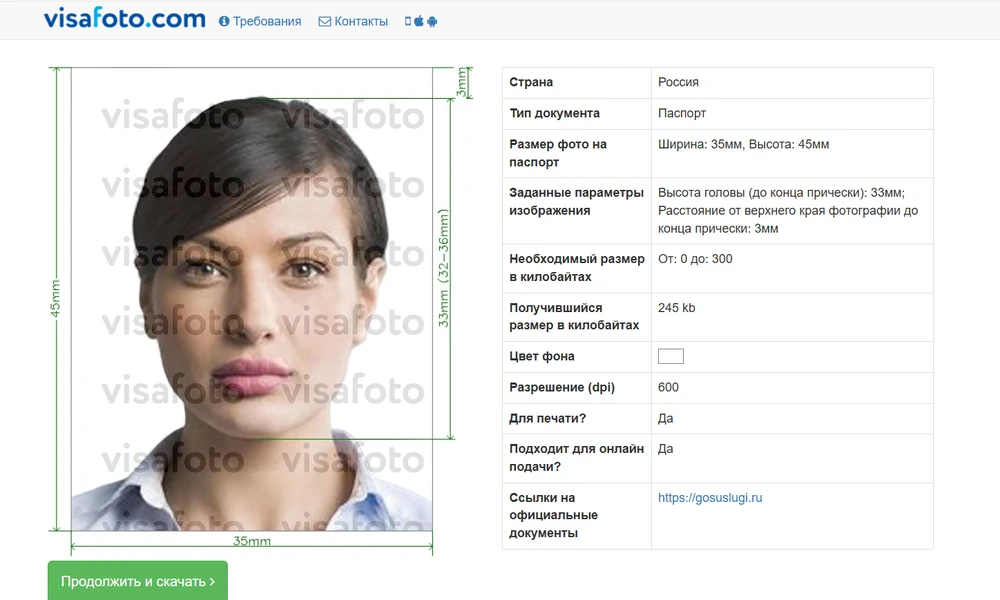Этот редактор фото на паспорт, работающий в онлайн-режиме, подготавливает портреты исключительно для паспортов. Содержит шаблоны для 50 стран, включая Россию. Задник заменяется на белый автоматически, нужно только подогнать лицо под шаблон. К скачиванию будет предоставлено 8 фото, умещенных на одном листе. К импорту принимаются только файлы в JPG (JPEG). Есть ограничения по весу и разрешению (до 10 Мб, менее 4000 x 3000 пикселей).