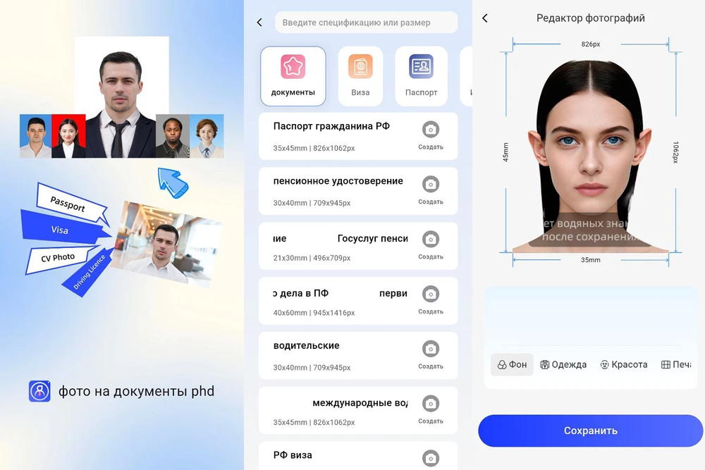 - Создание фото на паспорт — мобильное кроссплатформенное приложение, ориентированное на подготовку портретов для размещения на официальных бумагах.